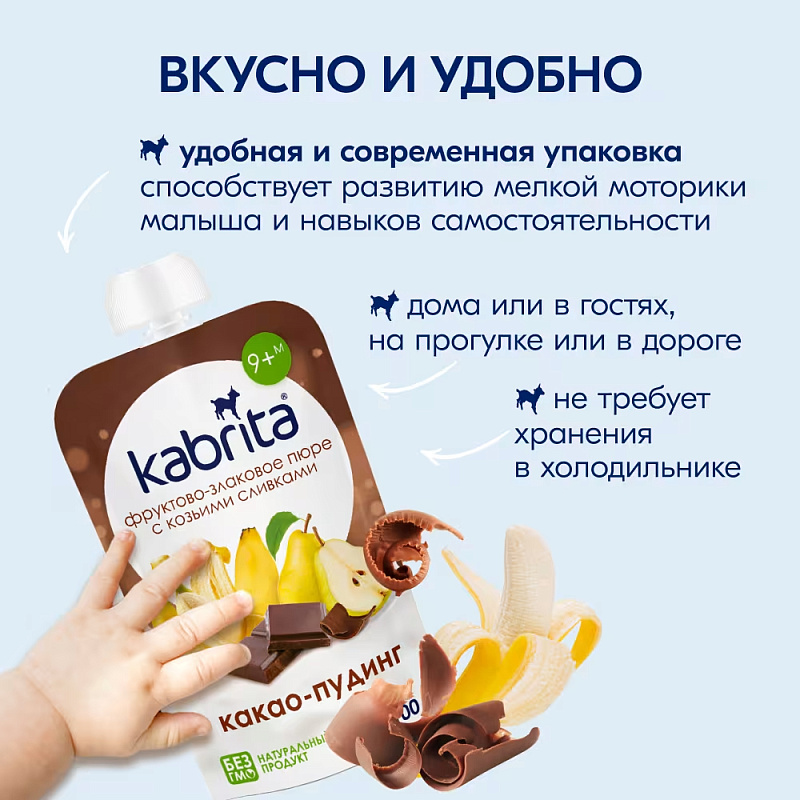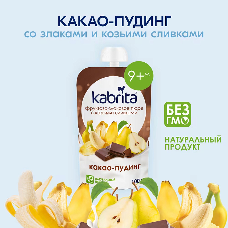 КАКАО-ПУДИНГ с козьими сливками – это вкусный, сытный и полезный десерт от Kabrita! Сочетание какао, полезных злаков и органических фруктов подарит шоколадный вкус и заряд бодрости маленьким гурманам! Пудинги можно давать малышам в качестве полдника или перекуса. Без добавления сахара. Натуральный продукт. Не содержит глютен. Для детей старше 9 месяцев.
