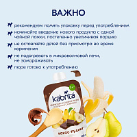 Грушевое пюре, сок белого винограда из концентрированного сока, банановое пюре, сливки из козьего молока, рисовый крахмал, мука из проса, какао- порошок. Не содержит глютен. Содержит молочный белок.