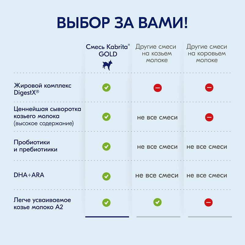 Kabrita 1 GOLD – адаптированная сухая молочная смесь приготовлена из натурального полезного козьего молока. Козье молоко и продукты на его основе хорошо усваиваются и переносятся. Это способствует более комфортному пищеварению ребенка. Смеси Kabrita – сбалансированное, полноценное и бережное питание с рождения.